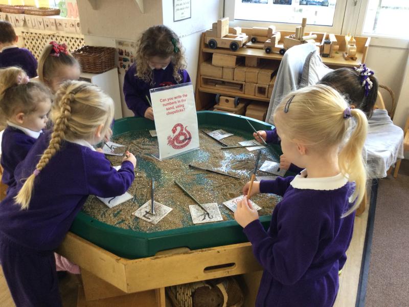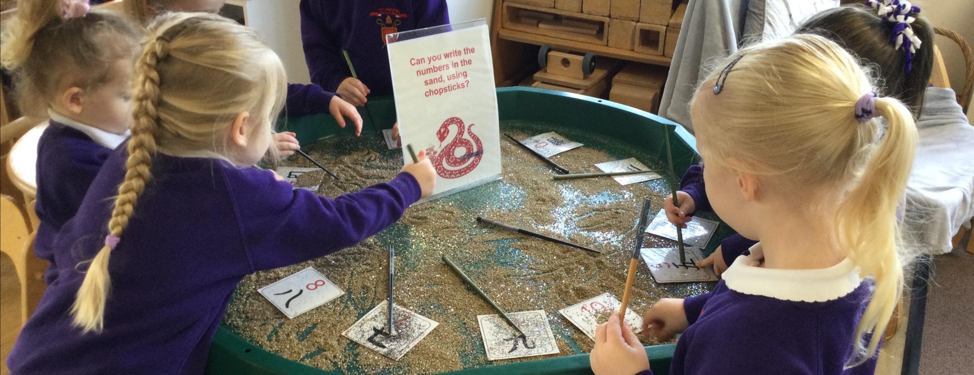 We are celebrating Chinese New Year this week. We have been writing with chopsticks.