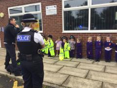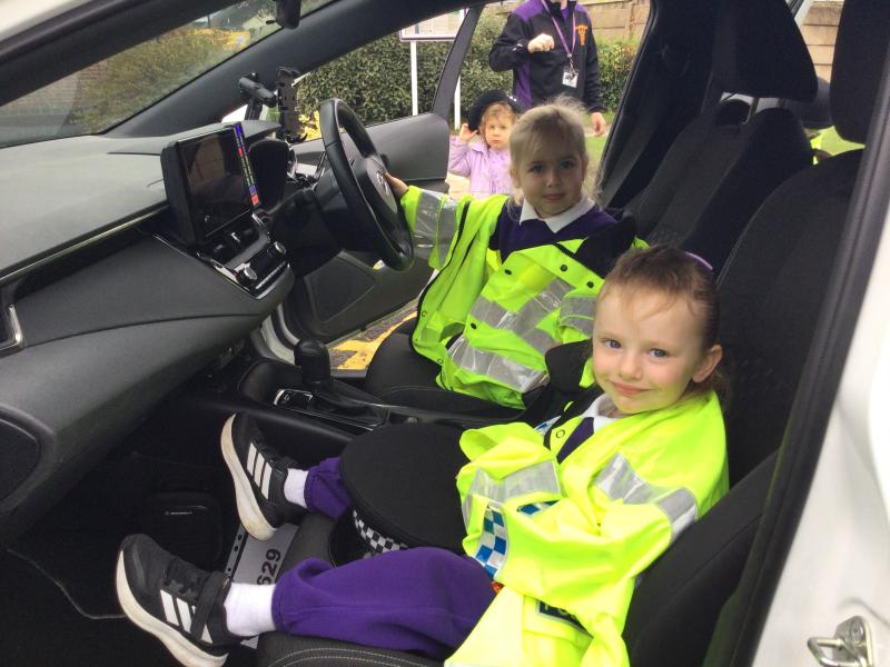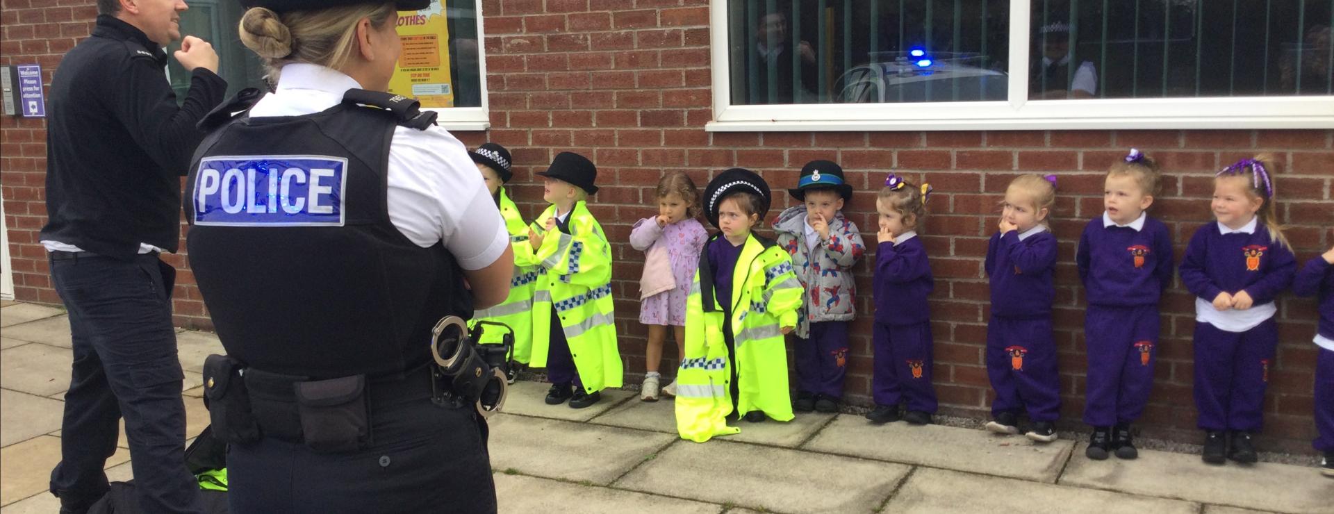 Children in the Nursery got to meet the Police and the Firebrigade today. They got to try on the Police Uniform and go in the Police Car. They then had a talk from the Firemen about their role and got to try out some of the equipment.